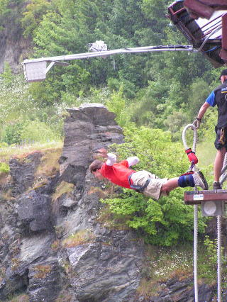 バンジージャンプで飛び降りる瞬間。 下は深い谷なので、超こわそうでした。 |